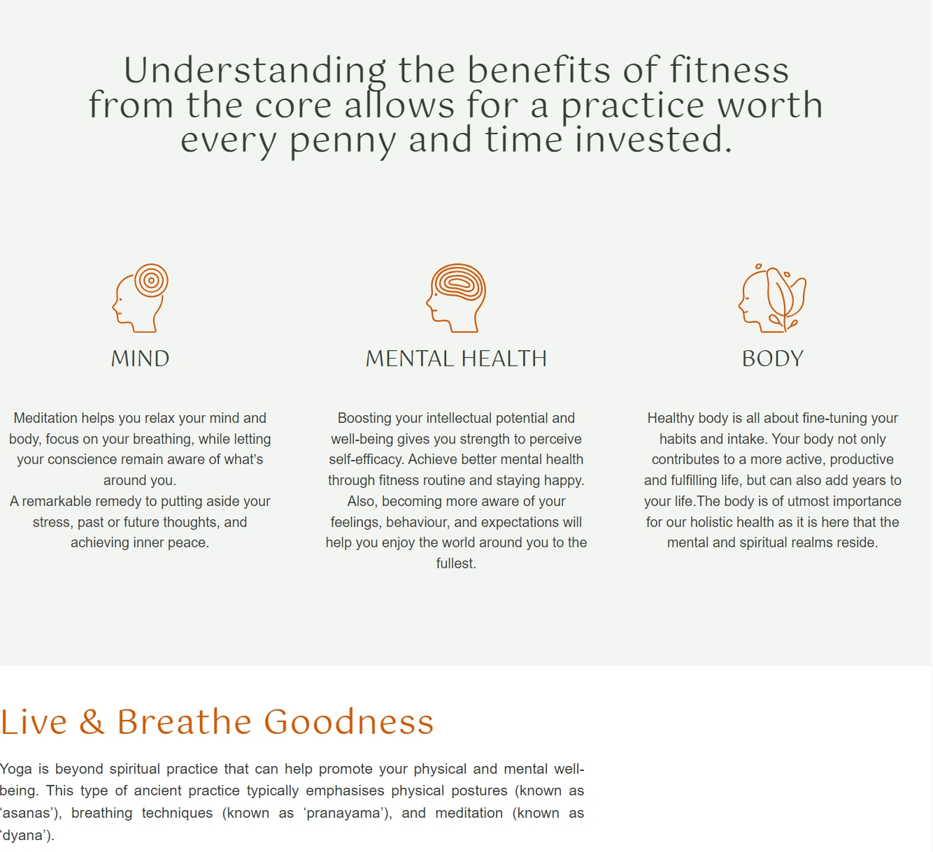 6. Content Production: Create pages filled with relevant information, great quality content on yoga, wellness, and mindfulness